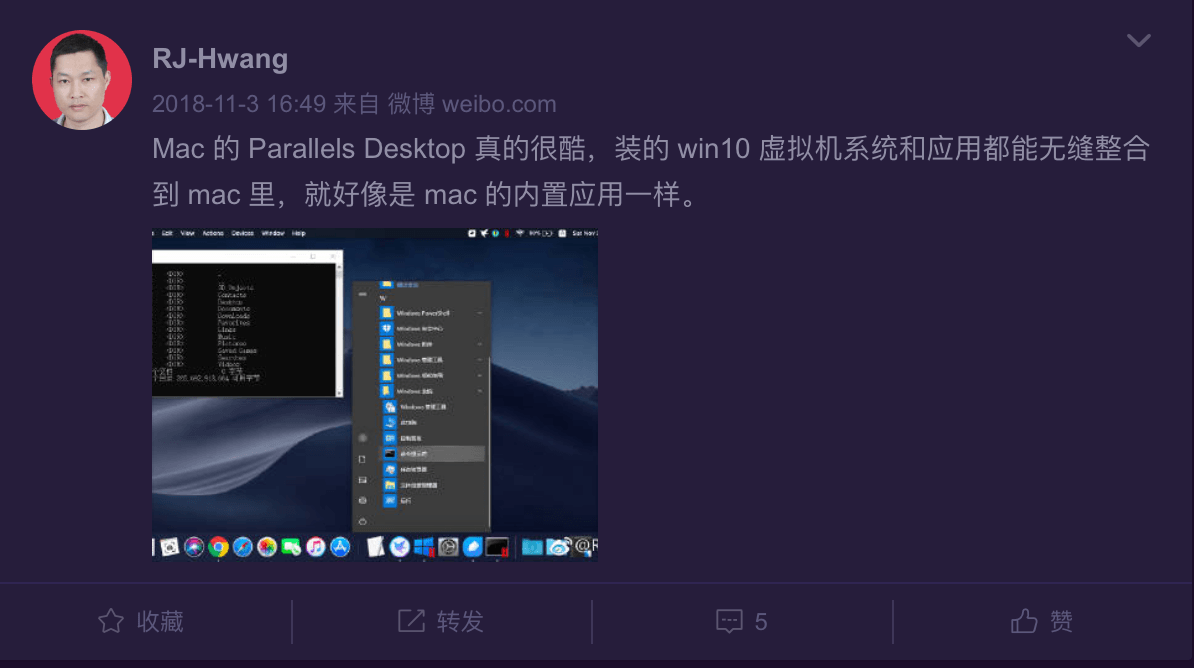 使用 Parallels Desktop 可以实现在 Mac 和 Windows 间的轻松切换,而无需重启电脑。