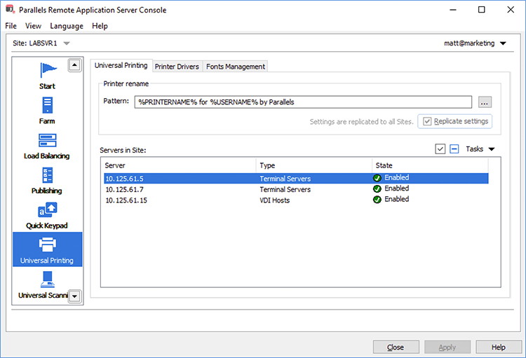 使用包含 Parallels® Remote Application Server (RAS) 通用打印的现成可用的远程桌面打印,用户可以直接打印到他们的本地打印机,而不需要任何额外的配置。